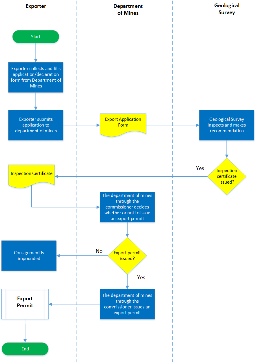 | 5 | The department of mines throught the commisioner issues the exporter an export permit on the basis of the inspection report |